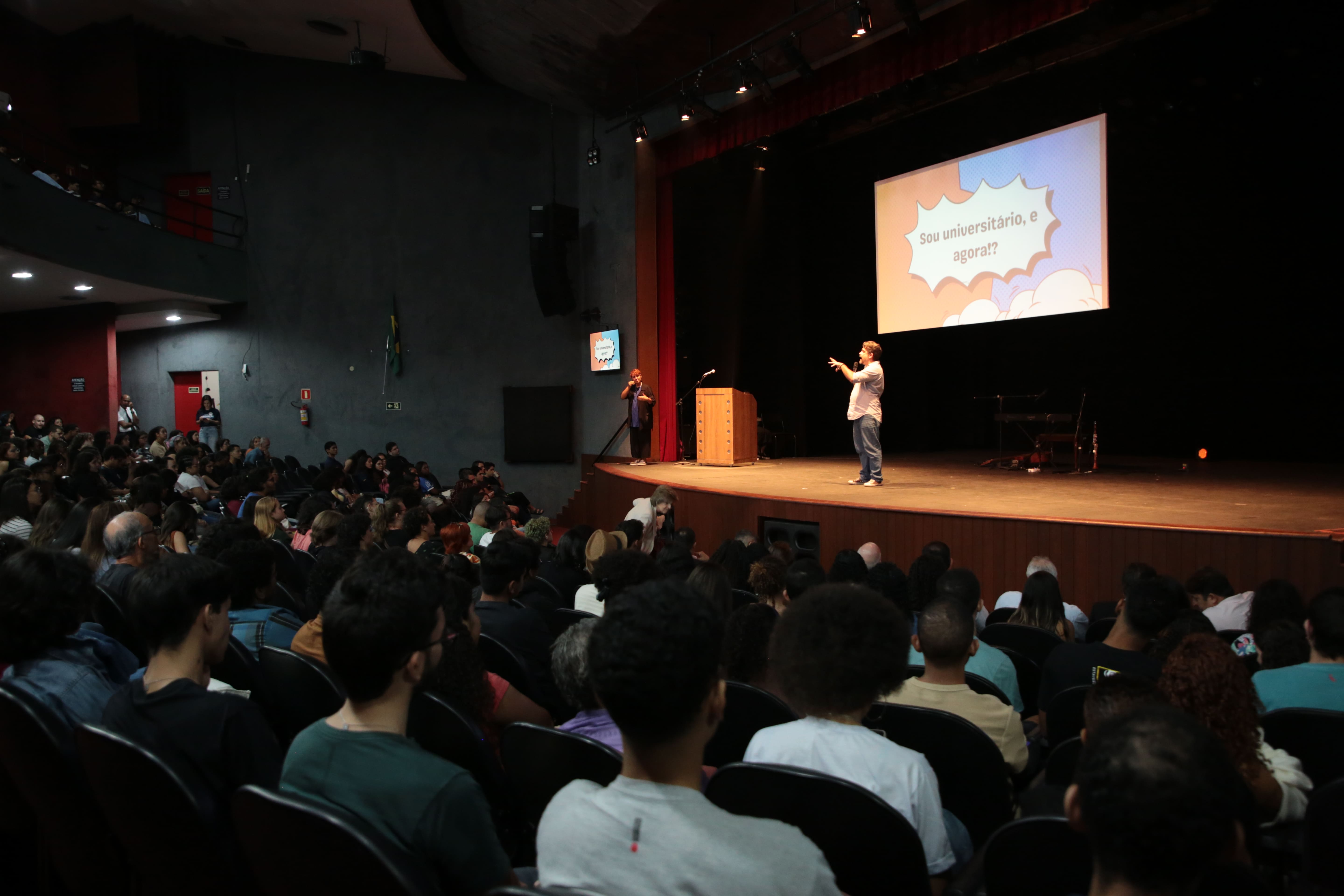 A programação contou com apresentação cultural do Grupo Andora, boas-vindas dos diretores de centros, sorteio de brindes e a palestra Sou universitário, e agora?, ministrada por Gabriel Monteiro, psicólogo da Pró-Reitoria de Políticas de Assistência Estudantil (Propaes).