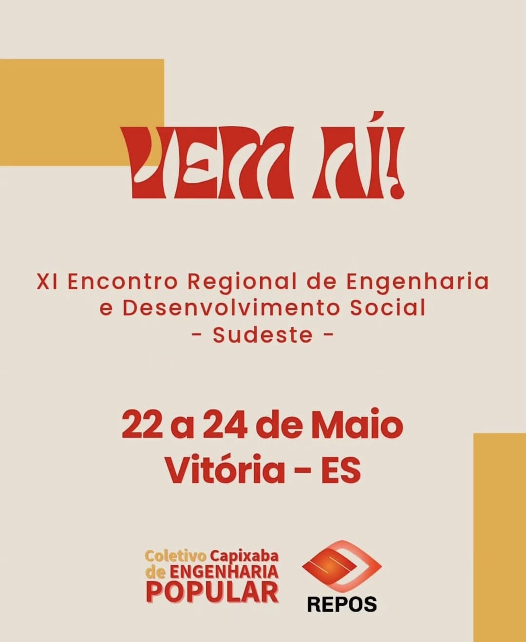 O campus de Goiabeiras sedia entre os dias 22 e 24 de maio a XI edição Sudeste do Encontro Regional de Engenharia e Desenvolvimento Social (Ereds). O objetivo do encontro, que neste ano tem como tema Tecnologia e envolvimento: construindo alternativas, é debater a prática de uma engenharia voltada para as transformações populares.