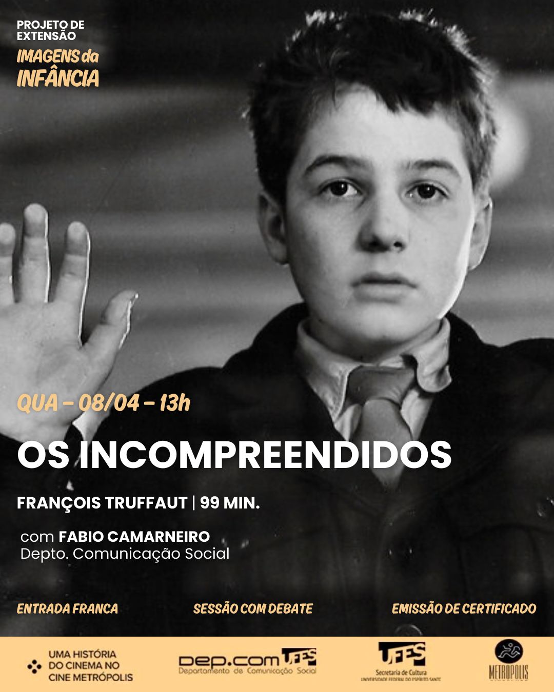 Clássico da Nouvelle Vague francesa, o filme Os Incompreendidos será exibido nesta quarta-feira, 8, dentro da programação do projeto de extensão Uma História do Cinema no Cine Metrópolis. O longa integra o novo módulo da iniciativa, Imagens da Infância, que neste semestre se dedica às histórias que têm crianças como protagonistas.