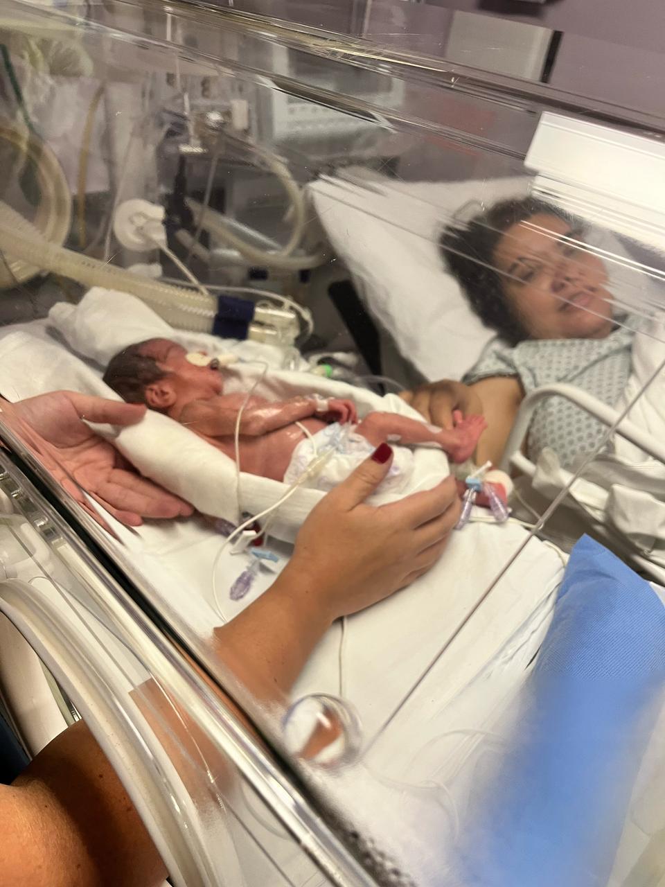 O parto teve que ser antecipado quando o bebê completou 28 semanas de gestação, devido ao agravamento da doença da mãe e depois de uma recomendação técnica da equipe médica do hospital, que é referência para gravidez de alto risco na capital capixaba. Ravi nasceu com 1,2kg no último dia 6 e segue internado na Unidade de Terapia Intensiva Neonatal do Hucam, como geralmente ocorre com bebês nascidos com esta prematuridade. Está estável e sem previsão de alta.