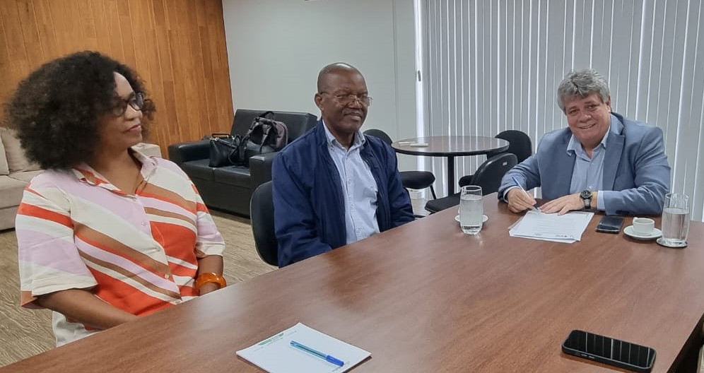 Também participaram da reunião o secretário de Relações Internacionais da Ufes, Felipe Guimarães; a chefe de Gabinete da Reitoria, Ana Paula Bittencourt; o diretor de Relações Interinstitucionais, Gustavo Cardoso; o diretor do Centro de Educação, Reginaldo Sobrinho; a assessora de Relações Políticas com a Comunidade Acadêmica, Patrícia Rufino; a coordenadora de Cerimonial e Eventos, Ana Beatriz Fonseca; a coordenadora do Núcleo de Estudos Afro-Brasileiros (Neab/Ufes), Marluce Lopes; as professoras do Centro de Educação Marileide França e Ozirlei Marcilino; e o estudante de Direito e membro da Liga dos Universitários Africanos (LUA), Santos José Afumu.