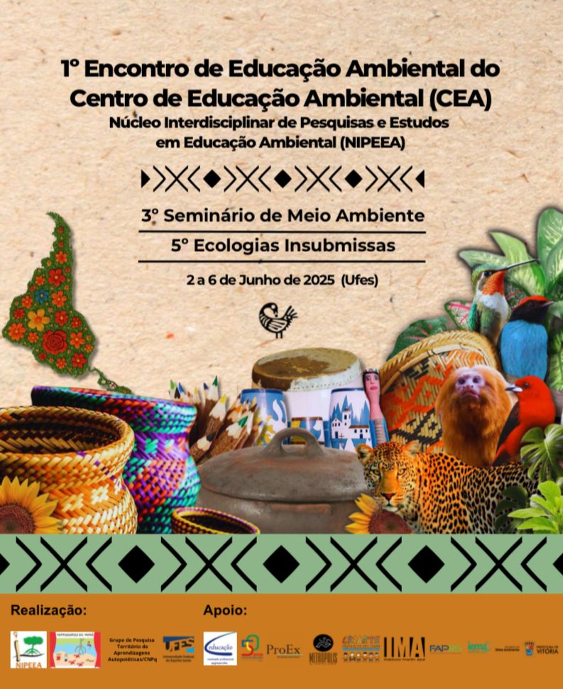 Começa na segunda-feira, 2, no campus de Goiabeiras, o 1º Encontro de Educação Ambiental do Centro de Educação Ambiental do Núcleo Interdisciplinar de Pesquisa e Estudos em Educação Ambiental (NIPEEA), vinculado ao Centro de Educação (CE) da Ufes. O evento vai até o dia 6 de junho e, em paralelo, serão realizados o III Seminário de Meio Ambiente e o 5º Ecologias Insubmissas. As atividades integram as comemorações dos 50 anos do Centro de Educação e dos 20 anos do NIPEEA.